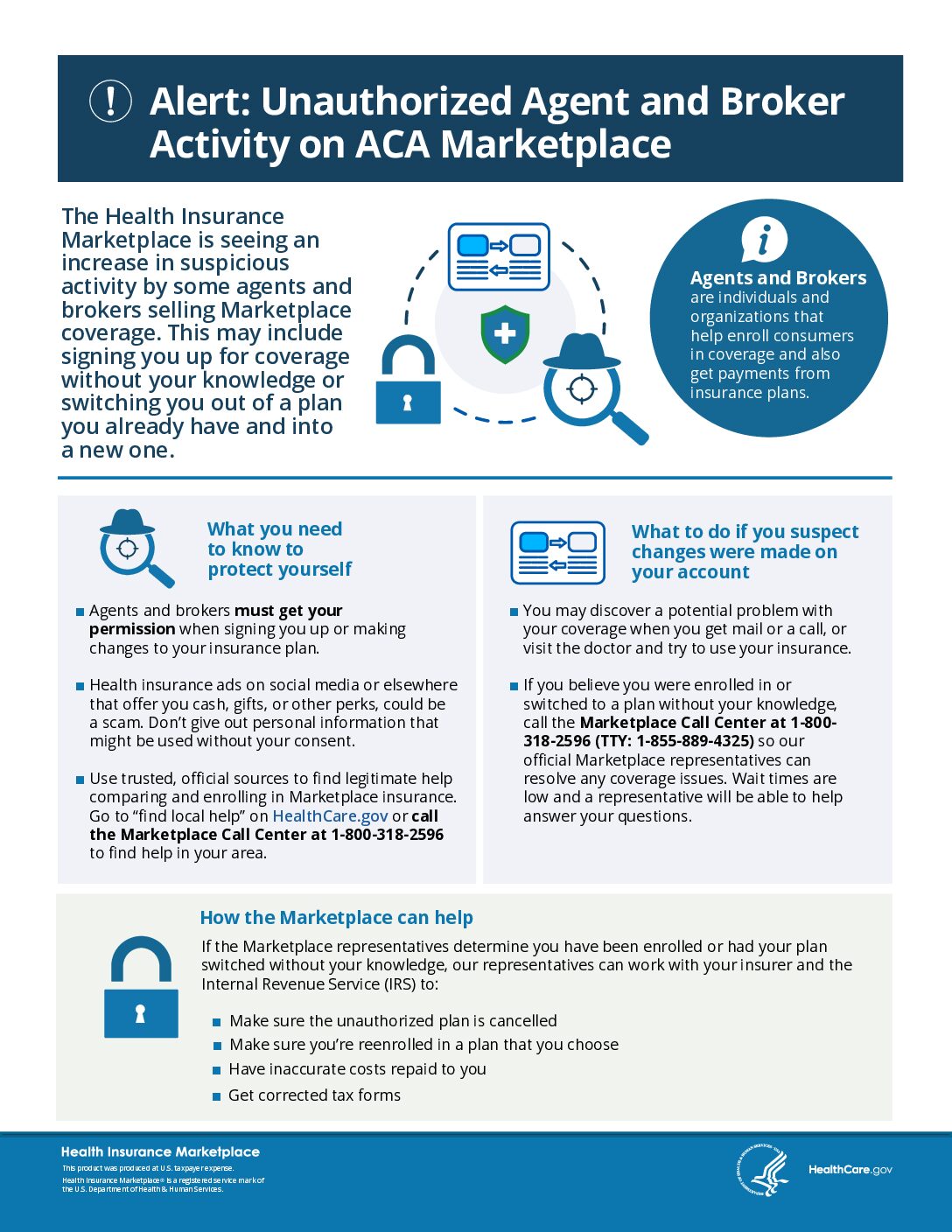 At Lifecare, protecting our members and their coverage is a top priority. This infographic from the Health Insurance Marketplace highlights a rise in unauthorized agent and broker activity that can lead to people being enrolled in or switched between ACA Marketplace plans without their knowledge. It outlines key warning signs to watch for, practical steps to safeguard your personal information, and what to do if you suspect changes were made to your coverage without your consent. The resource also explains how the Marketplace can help resolve issues, correct costs, and ensure you are enrolled in a plan you choose. If you have any questions or concerns about your coverage, the Lifecare team is here to help and encourage you to reach out.